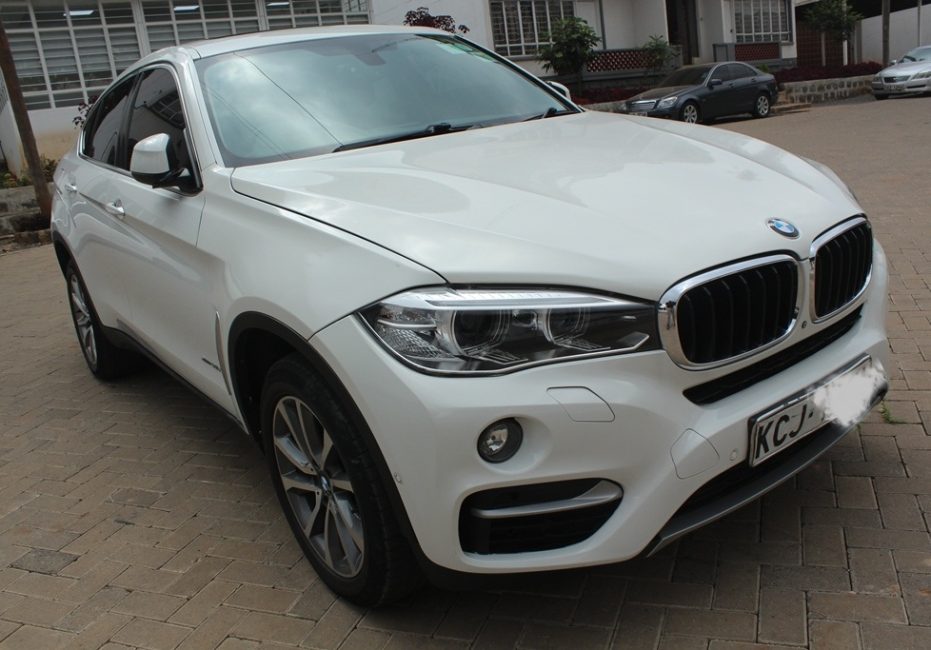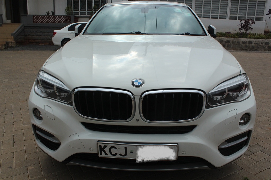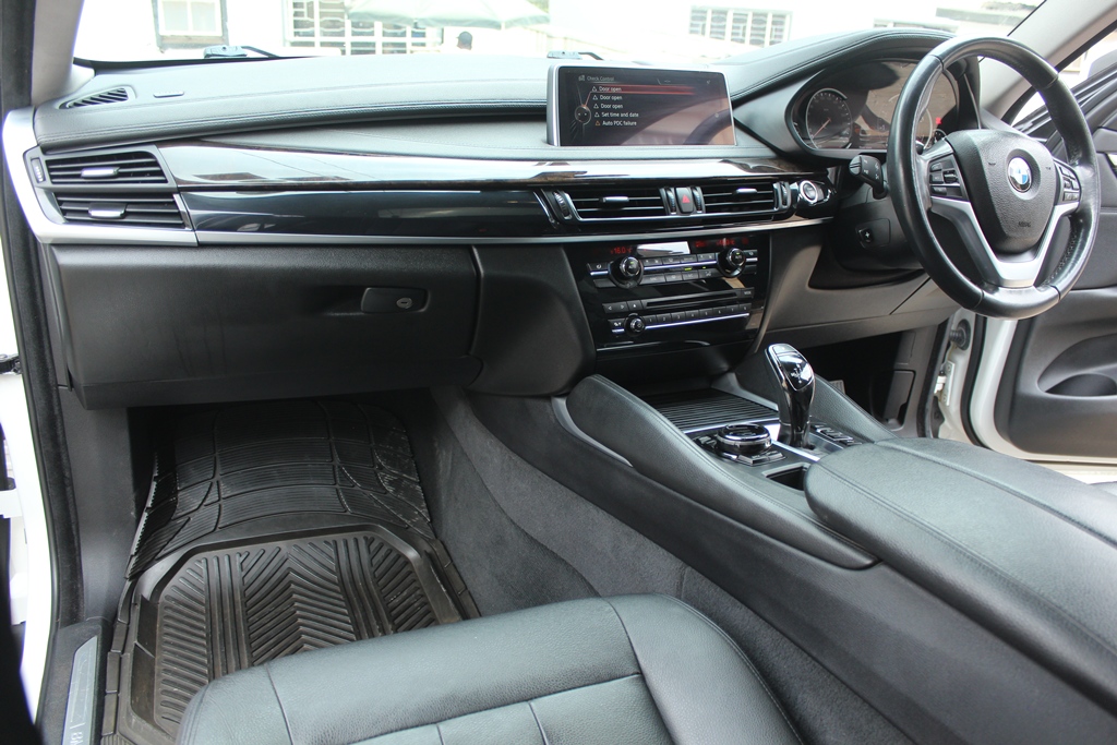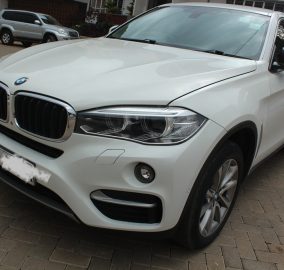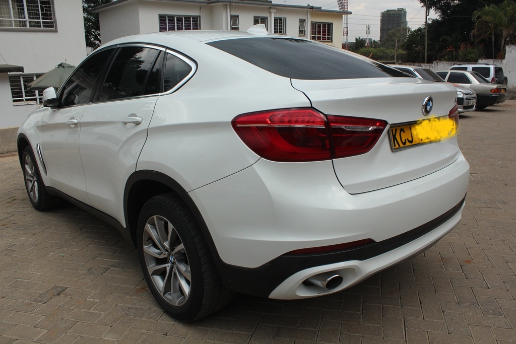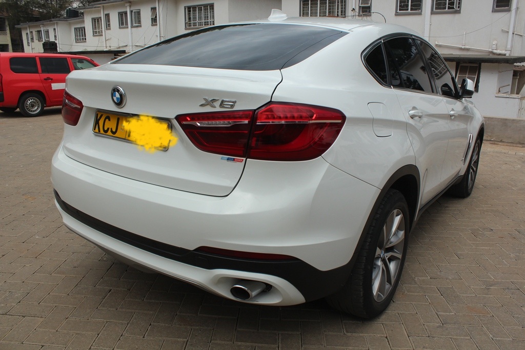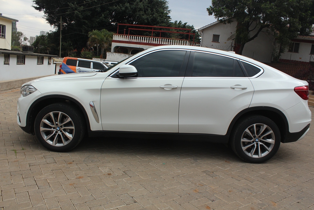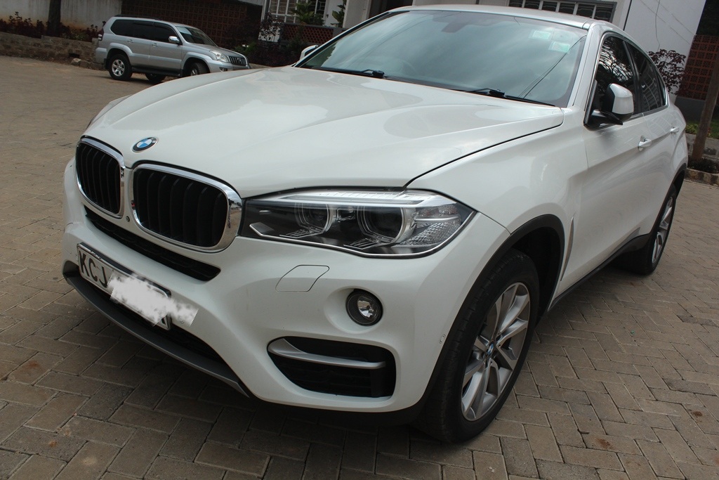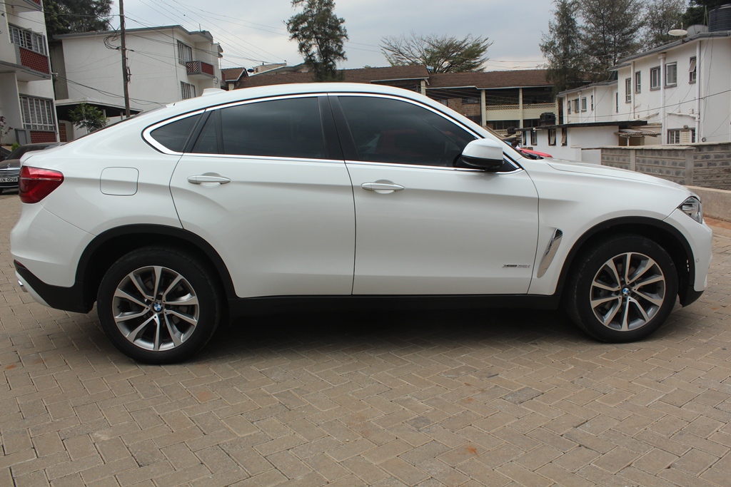 BMW X6, Pearl white, Model WBAKU22, 3000cc Twin power turbo petrol, AWD, Automatic transmission, Air conditioning, Power steering, Power windows, Power mirrors, Cruise control, Black leather interior, Power Sunroof!
