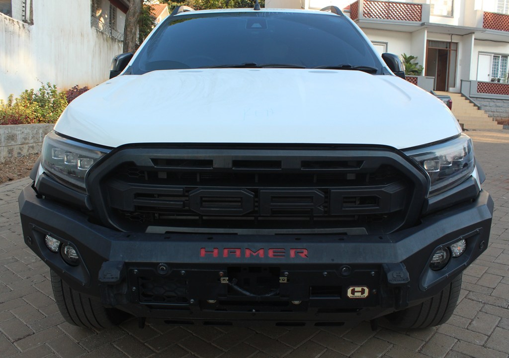 Ford Ranger Wildtrak Model MNBUMF, Pearl, 3200cc Duratorq diesel, Automatic transmission, Ar conditioning, Power steering, Power windows, Power seats front, Power mirrors – retractable, Reverse camera, Black leather interior, Cruise control, Multi terrain selector, Hamer edition!