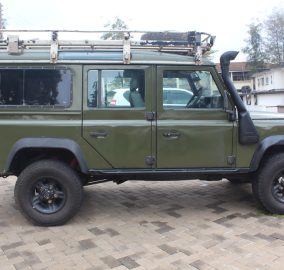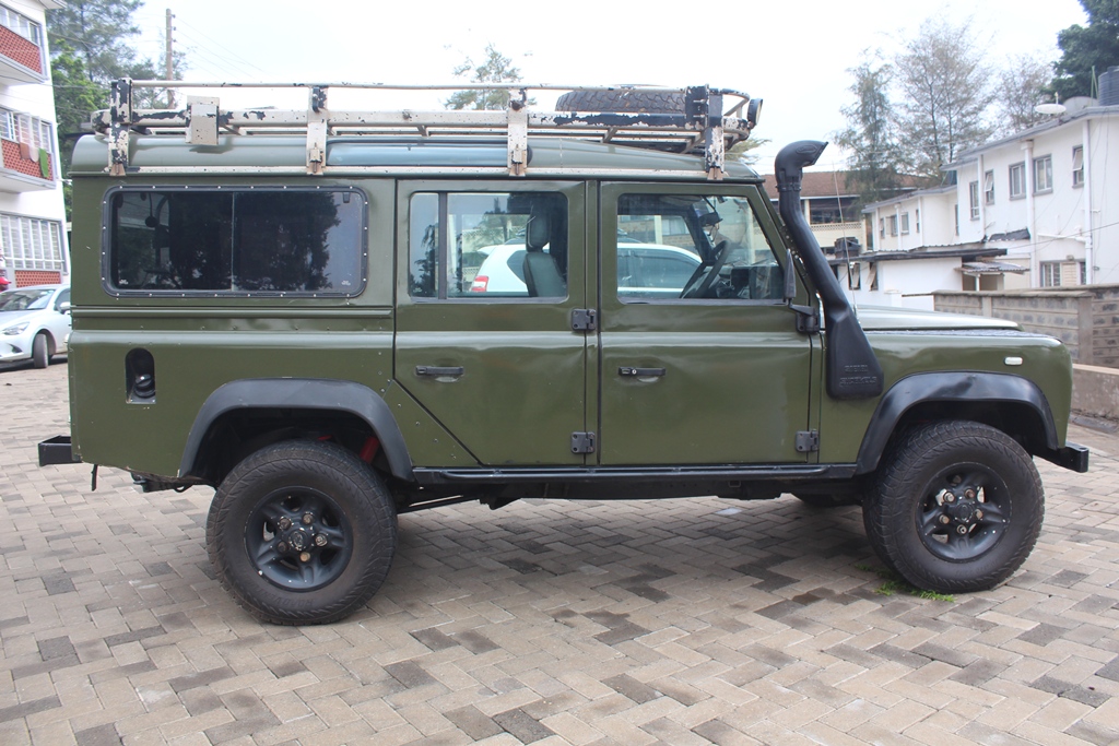 Landrover Defender 110 Model 300tdi, Jungle green, 2500cc Turbo diesel, Manual transmission, 4WD, Power steering, Leather interior, Original landrover alloys, Roof rack, *Expedition spec: Salisbury rear diff, long range diesel tank, 40 ltr water tank and tap, full length aluminum roof rack, 6 alloy wheels 5 spoke powder coated black, Custom rock sliders, Robs magic springs and dampers (red), Upgraded British Army spec Chassis, Puma interior seats, Pioneer 6 speaker sound with tweeters and Sony Subwoofer, LED headlights and crystal indicators, Tow ball, Dual battery set up (national LUNA) 2 x 70A elito batteries, Steering guard