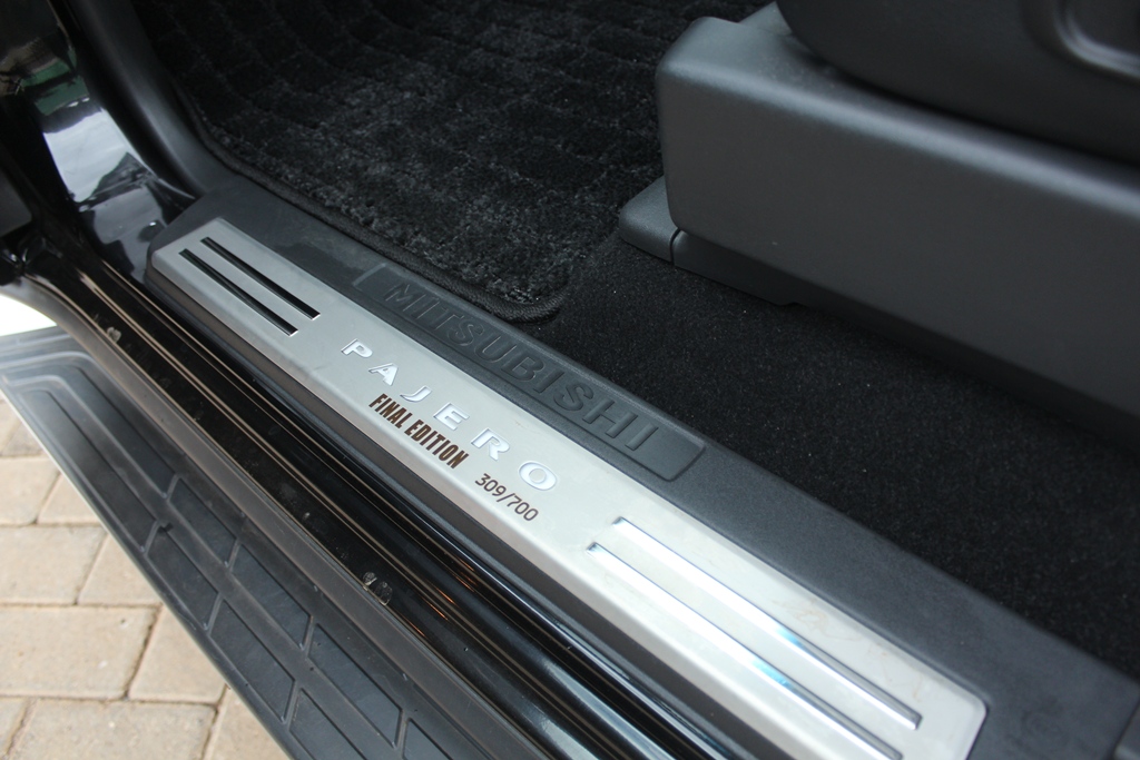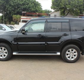 Mitsubishi Pajero Final Edition, Model V98W, Black metallic, 3200cc Turbo diesel, Automatic transmission, Air conditioning, Power steering, Power windows, Power mirrors – retractable, Black leather interior, Alloy wheels, Side steps, Roof rails, Sunroof!