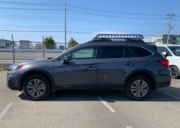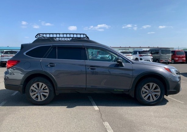 Subaru Outback, Model BS9, Gunmetallic, 2500cc H4 petrol, Automatic transmission, AWD, Power windows, Air conditioning, Power tailgate, Power seats, Leather interior, Sunroof, Roof rack.