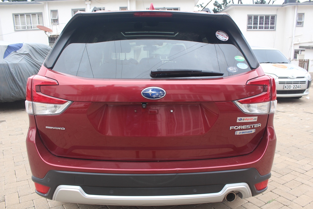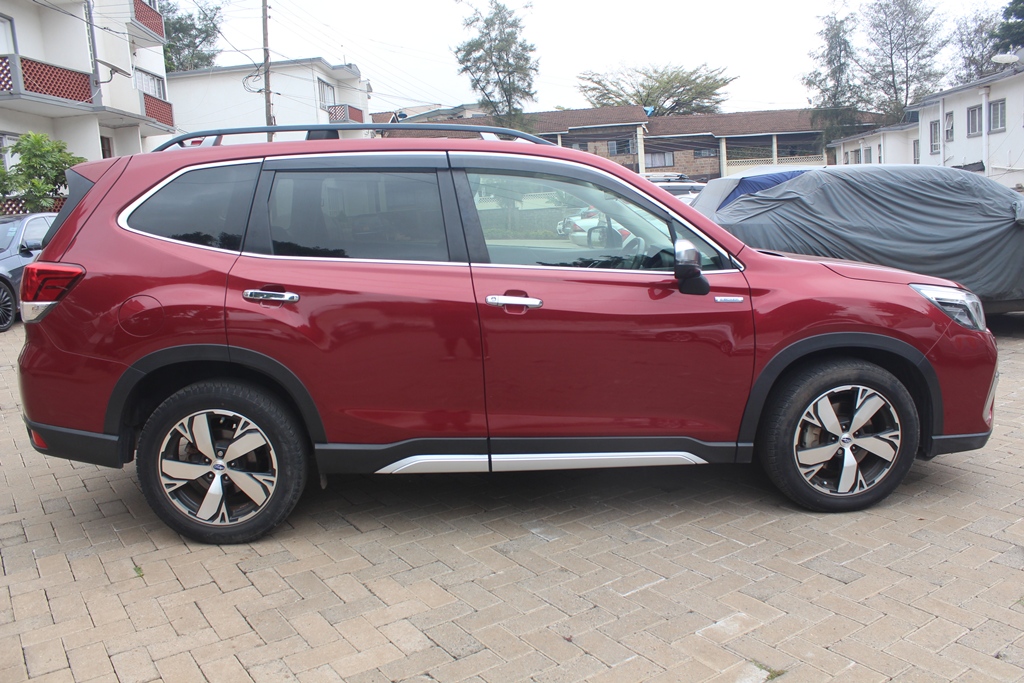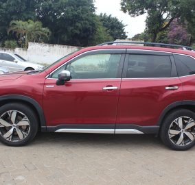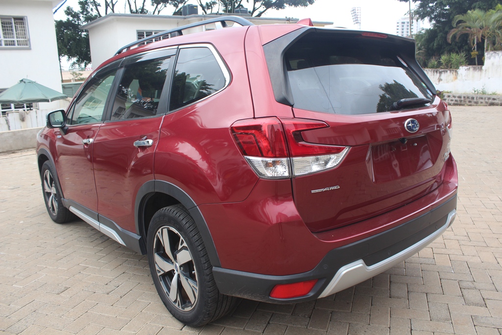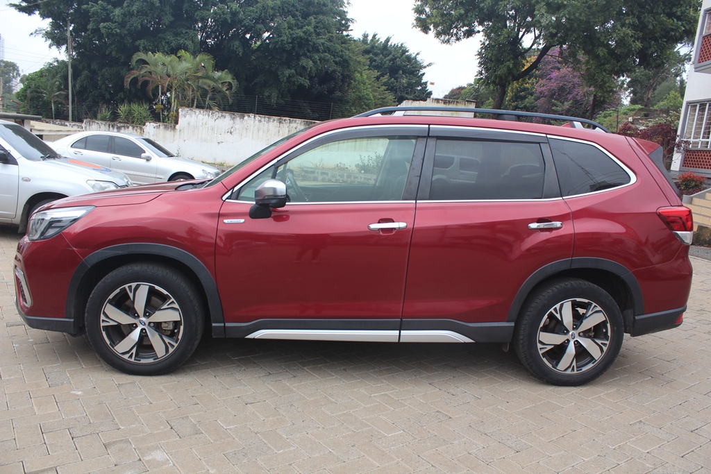 Subaru Forester, Model SKE, Wine red, 2000cc H4 petrol - hybrid, Automatic transmission, Air conditioning, Power steering, Power windows, Power mirrors – retractable, Rear spoiler, Cruise control, Deluxe grey cloth interior, Sunroof!