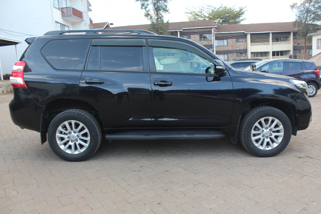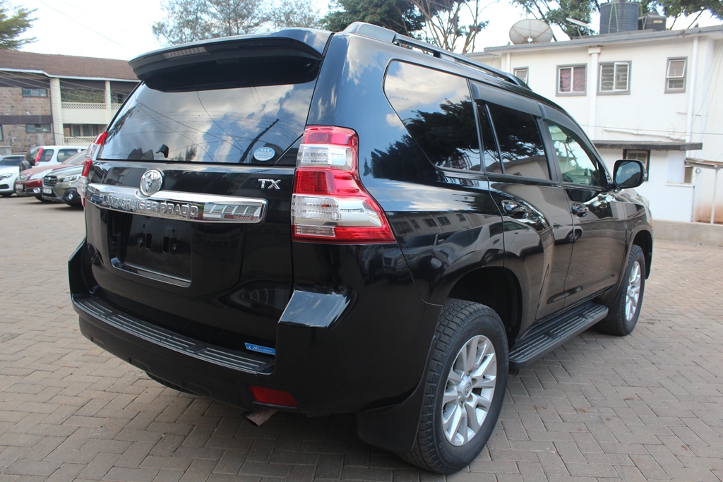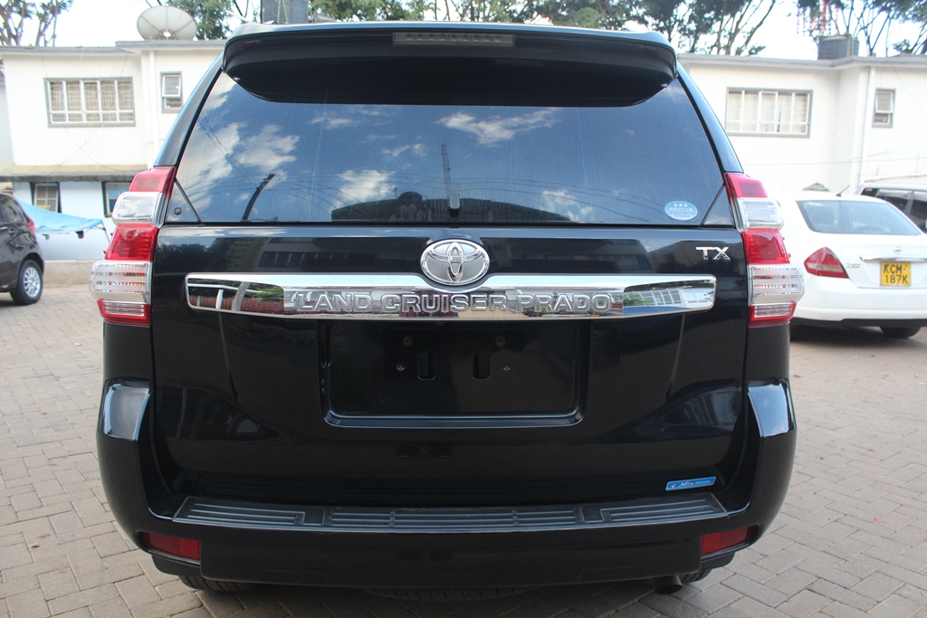 Toyota Landcruiser Prado TX 2017 Model TRJ150W-GKTEK, Black metallic, 2700cc Petrol, Automatic transmission, 4WD, Air conditioning, Power steering, Power windows, Power mirrors, Alloy wheels, Deluxe grey cloth interior, Sunroof!